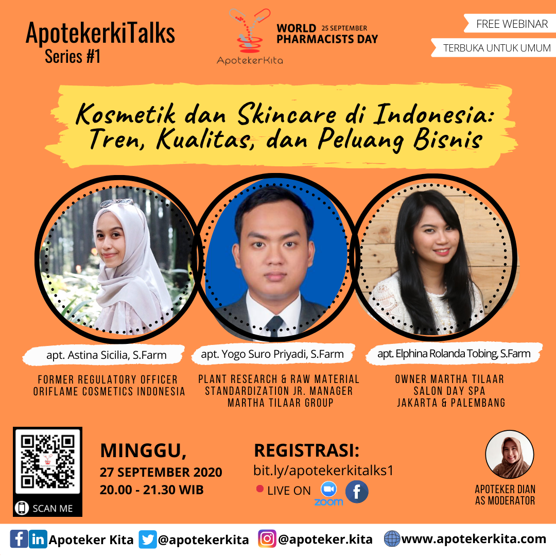 Dalam rangka memeriahkan World Pharmacist Day 2020, Apoteker Kita akan launching series perdana program “ApotekerkiTalks” dengan mengadakan webinar terbuka untuk umum!