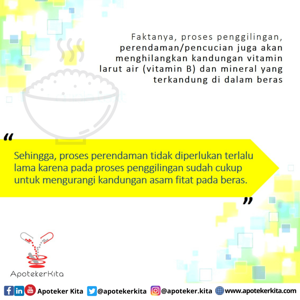 Hai Sobat Apoteker Kita! Jadi beras putih yang sehari-hari kita konsumi itu perlu direndam berapa lama sih?