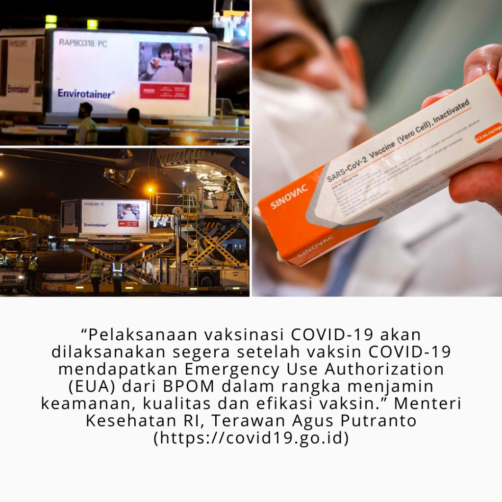 Tanda-tanda vaksin COVID-19 yang akan digunakan di Indonesia sudah semakin jelas nih, tapi jangan terlalu euforia dulu ya, karena Sinovac sendiri belum merilis hasil uji klinik fase 3 nya dan pastinya BPOM hanya akan memberikan izin edar kalau hal ini sudah terpenuhi. Selain itu, untuk tahap pertama vaksinasi akan ada golongan yg akan diprioritaskan (seperti tenaga kesehatan).