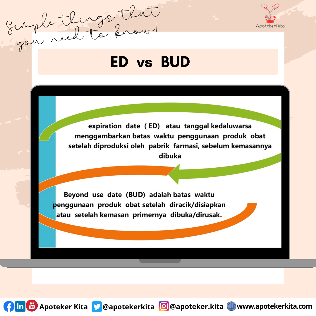 Expiration Date (ED): Tanggal kadaluarsa yang menggambarkan batas waktu penggunaan produk obat setelah diproduksi oleh pabrik farmasi, sebelum kemasannya dibuka.