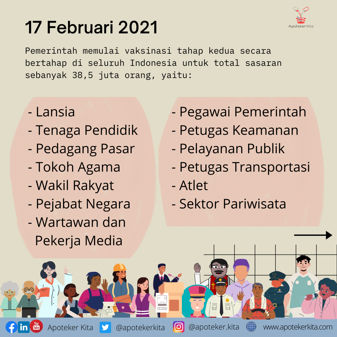 Siapa di sini dari Sobat ApotekerKita yang termasuk kedalam golongan prioritas vaksinasi tahap 2? Komen di bawah dengan menyebutkan profesimu ya! Sehat selalu.