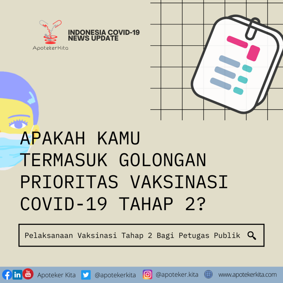 Sebanyak 38,5 juta orang total sasaran akan diikutkan pada vaksinasi tahap kedua yang ditargetkan selesai pada Mei 2021. Kelompok prioritas yang masuk dalam tahapan ini ditetapkan berdasarkan roadmap dari WHO, SAGE (Scientific Advisory Group for Emergencies), dan kajian dari ITAGI (Indonesian Technical Advisory Group on Immunization). Mereka adalah kelompok masyarakat yang memiliki interaksi dan mobilitas… Continue reading Apakah Kamu Termasuk Golongan Prioritas Vaksinasi COVID-19 Tahap Dua?